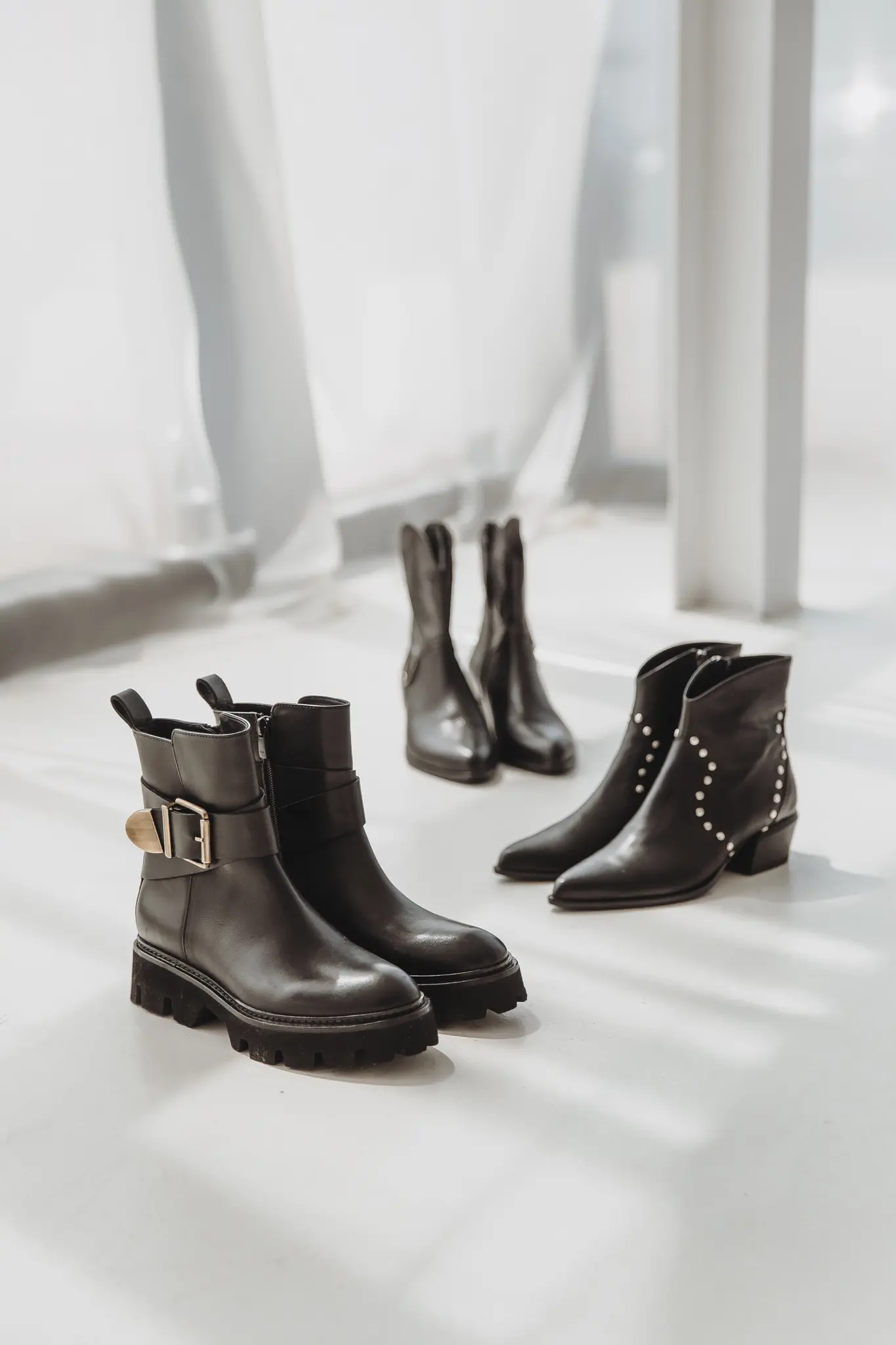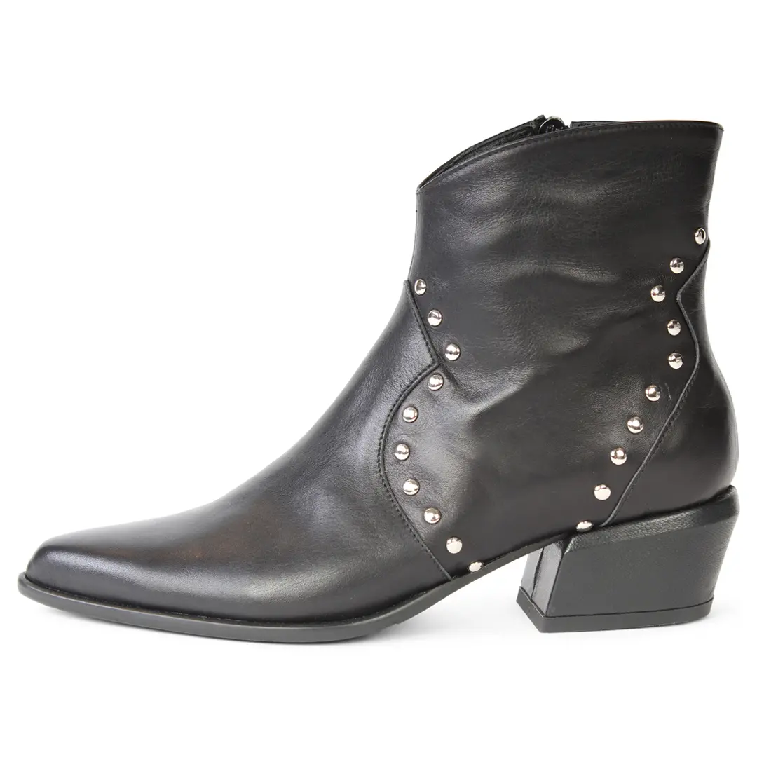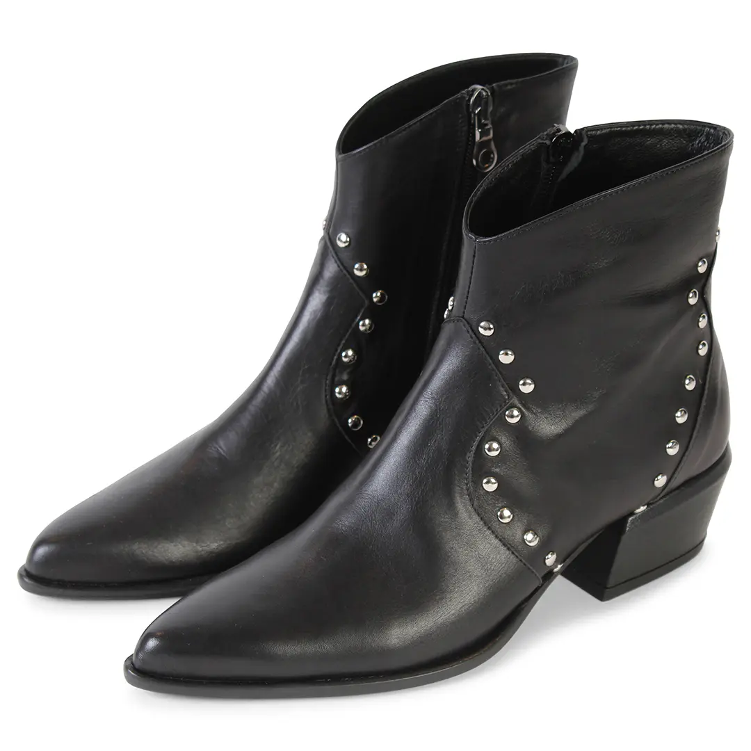 Ontdek FEM – een stijlvol en vrouwelijk enkellaarsje van Roberto d’Angelo, waar Italiaans design en comfort samenkomen. Dit verfijnde model is uitgevoerd in hoogwaardig, soepel nappa leer en afgewerkt met subtiele studs voor een elegante, edgy look.