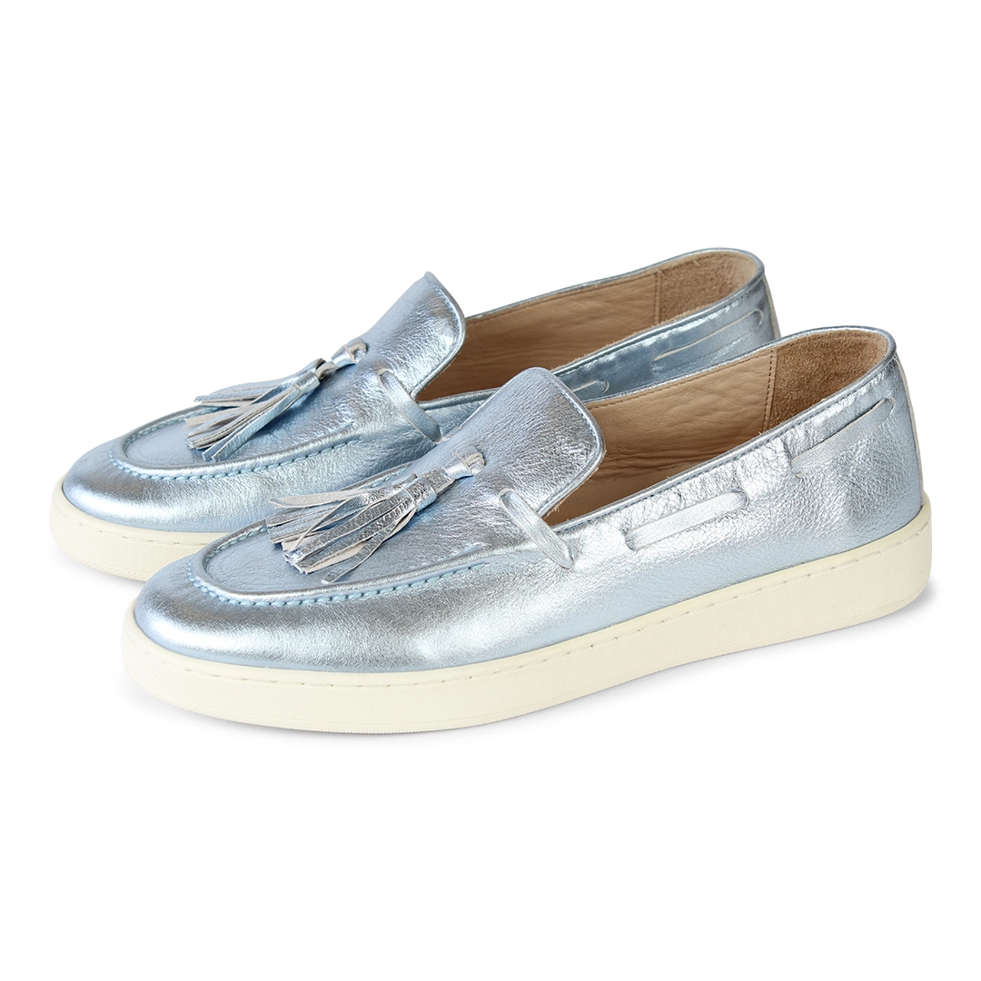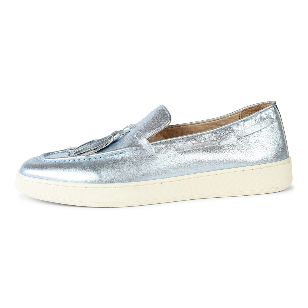 Fort Blu loafer dames van Roberto D’Angelo. Metallic lichtblauw leren instapper met flexibele EVA-zool voor stijlvol comfort. Lees meer