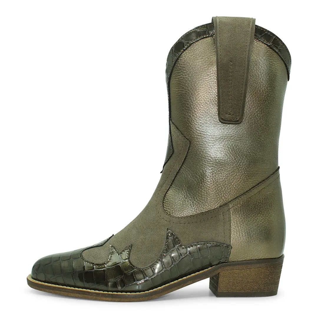 De Nardo Pearl Taupe van Roberto d’Angelo is een halfhoog enkellaarsje met een stijlvolle twist.