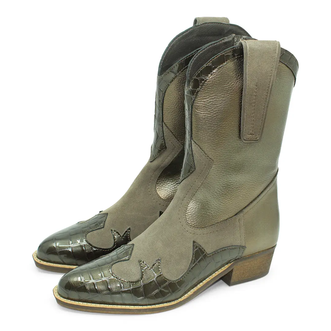 - Upper: punt croco print lakleer, suède leer en schacht in nappa leer