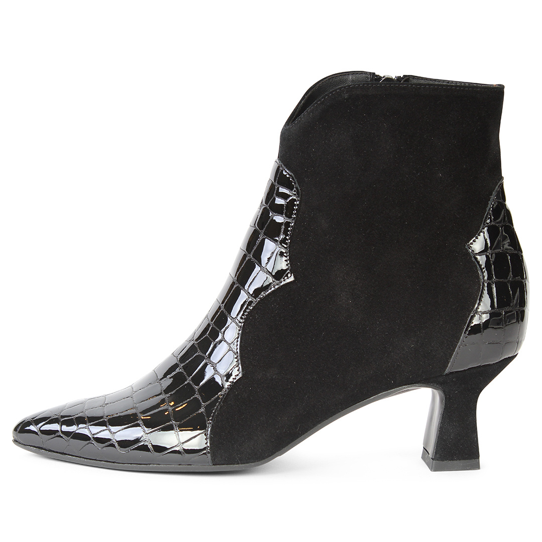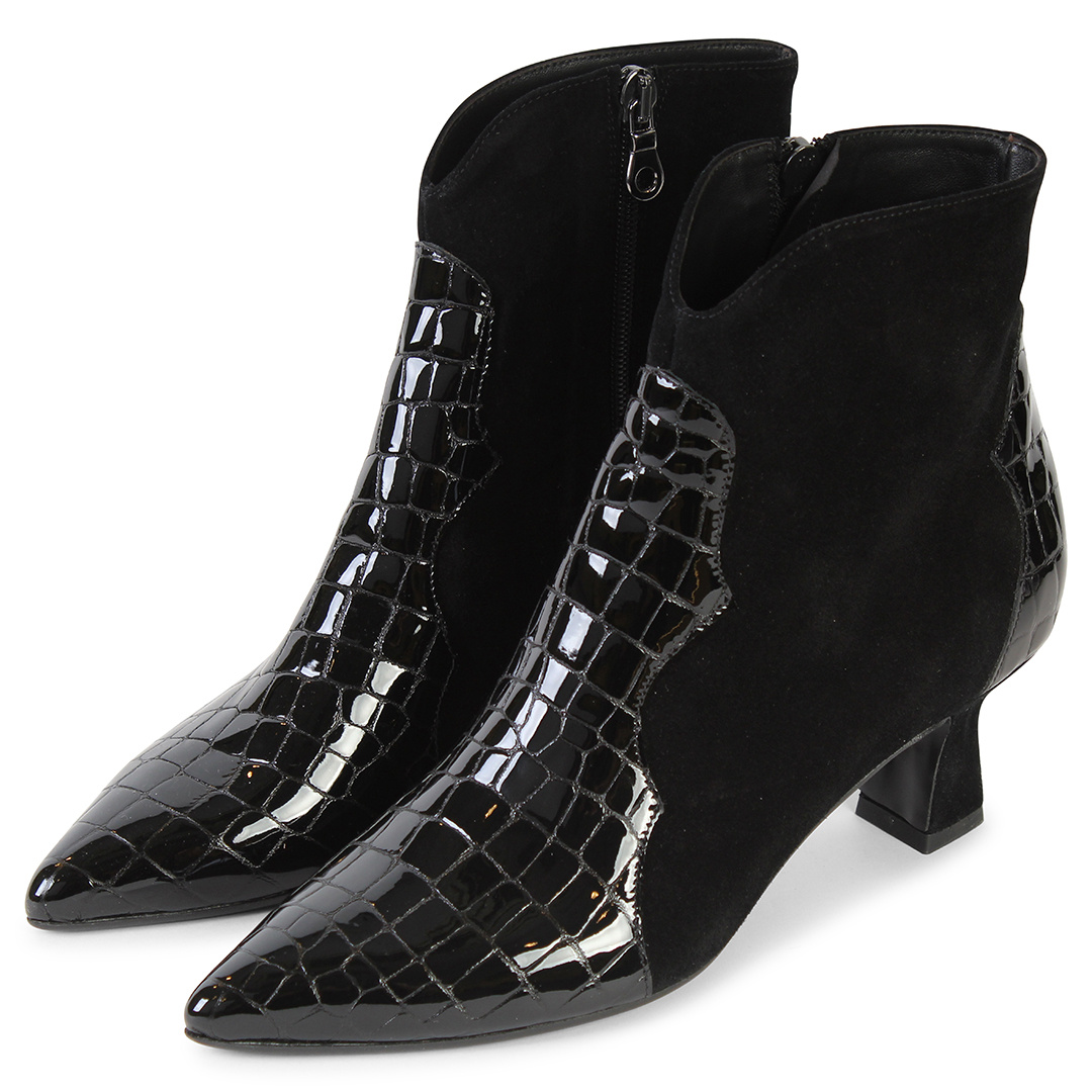 Ontdek de verfijnde stijl van enkellaarsje TILLY. Dit geraffineerde model combineert verschillende materialen: de neus is afgewerkt met een elegante croco lakprint Lees meer
