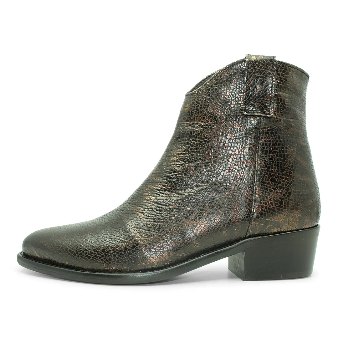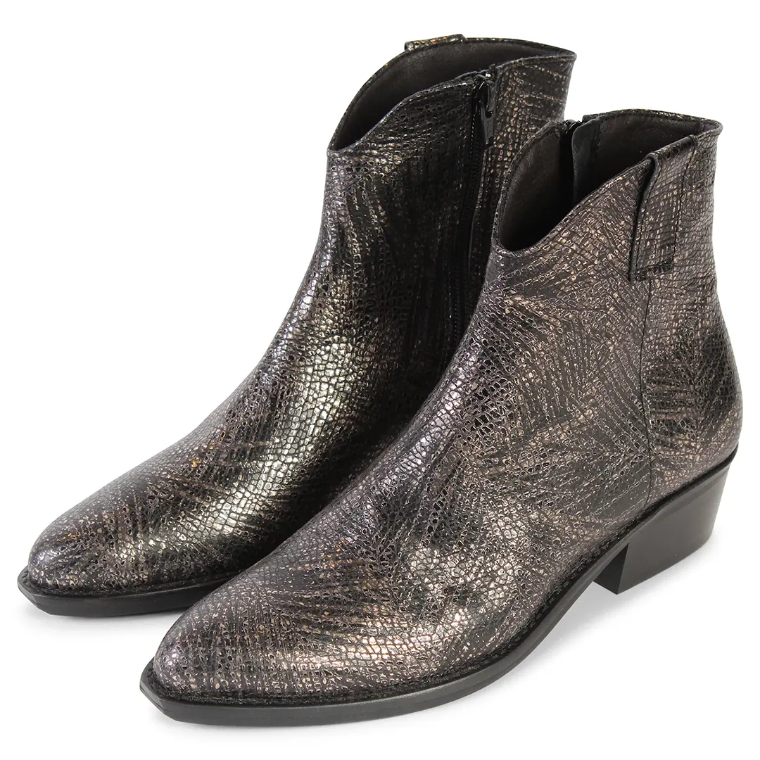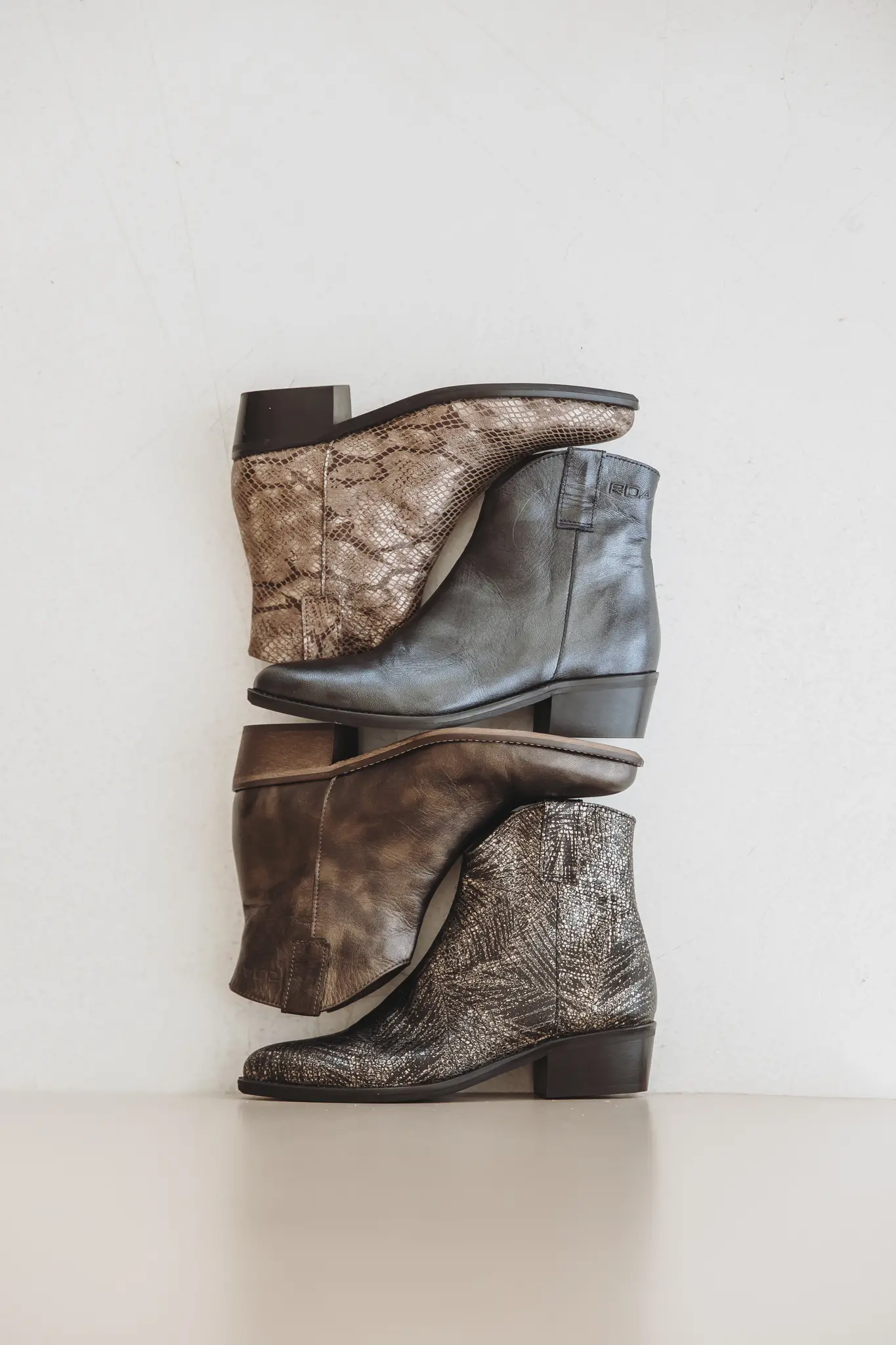Ontdek het comfort en de klasse van RINO BROWN – een stijlvol enkellaarsje met een iets lagere hak van 3 cm, ideaal voor wie de hele dag comfortabel wil lopen zonder in te leveren op uitstraling. Het laarsje is volledig uitgevoerd in BRUIN ZWART print leer, wat zorgt voor een stoere en luxueuze look in één.
