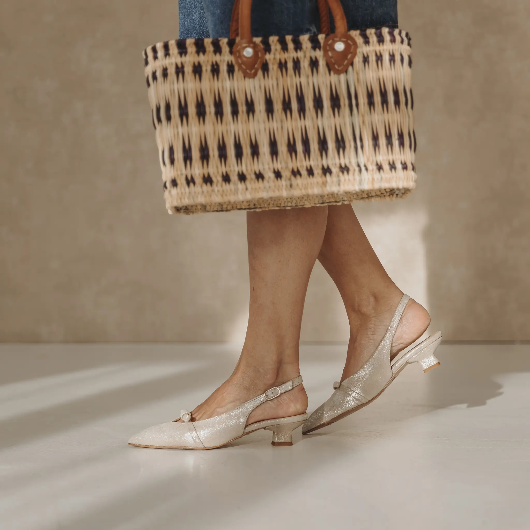 TIMBO BEIGE – Slingback met zachte suede en subtiele gouden touch
